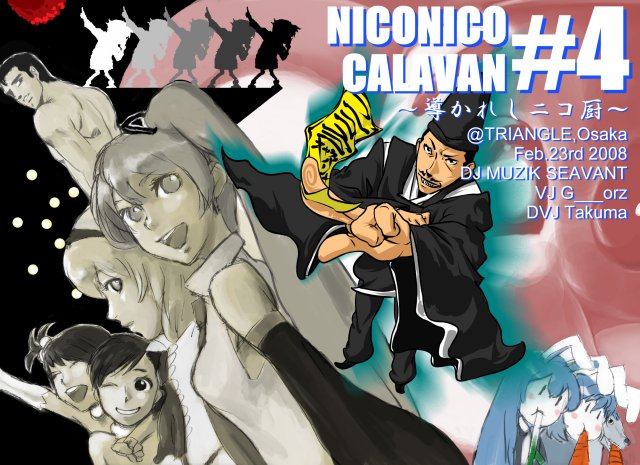 ※管理人うが様より許可をいただき、トピックを立てさせていただきました。 全国約400人?のキャラバンファンの皆様、昨年はお世話になりました。本年もよろしくお願い致します。 年始に開かれ完全燃焼した、ニコニコ合唱祭@大阪の興奮が覚めやらぬ中、ニコニコキャラバンの開催を宣言します。 クラブという音響設備の整った環境でみんなでニコニコするイベントです。 コスプレしたい! ニコ厨の仲間を増やしたい! とにかく俺に踊らせろ! みんなで一つになって歌いたい! という、カオスを味わいたい方にオススメするニコニコキャラ