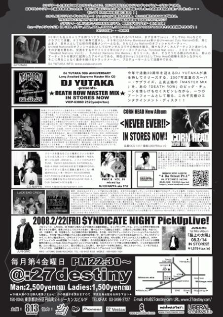 週末のパーティーでOPEN UP DJ としてスキルとメンタルを磨き、お馴染み“HIGHER”では既に風格を漂わせていたのも記憶に新しい。2008年の幕開けと同時にスタートする“HIT WONDER”は必ず数々の伝説を残す事になるであろ