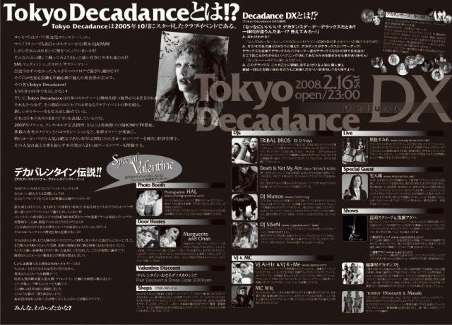 Tokyo Decadanceは日本中にある毛嫌いされたり馬鹿にされがちなマイノリティーなカルチャーを集めみんなの個性を認めて妙な偏見の目を打破しようという心意気ではじまったイベントです