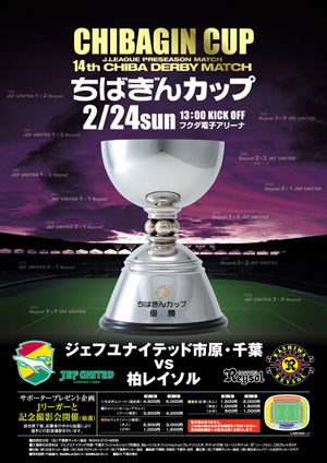 今や日本の3大カップ戦の一つ(?)と称されるちばぎんカップ。今年もJリーグ開幕前に行われます。 2008年,生まれ変わったJEF UNITEDが果たして今年,どこまでやれるのかを自分の目で確かめることができる,またとない機会。怪我人が多いのは覚悟のうえですが,それを振り払うだけの応援をしましょう。 ちばぎんカップ告知HP http://www.chiba-fa.gr.jp/chibagincup/ TV中継 千葉テレビ 24日18:15〜20:00(録画) http://www.chiba-tv.com/special.html 【終了後イベント】 第7回!姉崎クリーン作戦!! ≪心機一転