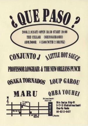 さて、今週末は、「ムーサンツルピカーノ」さんと、「hiraiian」さんの肝いりで、気の置けない仲間達が一堂に会する、"OSAKA ¿QUE PASO? vol,2″が、いよいよ開催で〜す!! 遠く茨城県から、あの「ザディコ・キックス」の凄腕ギタリストにして、名フィドラー、「ニシダ社長」もご来場!! みなさ〜ん、いらっしゃ〜〜い、楽しいこと請け合いでっせ〜〜〜〜!! アメリカ村 「ザ・セラー」 http://thecellar.web.fc2.com/ 大阪市中央区西心斎橋2-17-13 新炭屋ビルB1F TEL. 06-6212-6437 2月9日(土) OPEN 18:30 STA