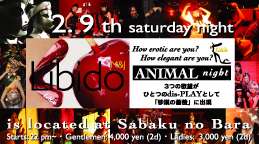 オフィシャルサイトオープン!! http://www.libidomj.tv/ 2.9 (Sat)◆LIBIDO M&J 5th ANIMAL NIGHT◆ ゴージャスでフェティッシュなメヒョウたちが集結。 そう一夜だけ。。 ◆◆◆…Message From Maika&Julia…◆◆◆ アニマルナイトにふさわしく、アニマル特殊メイクブースも出現。 貴方は角派?それとも爪派?それとも。。 2回目となるShoe & Leg Showの後半は一般の方々がメイン。 主役は貴女。脚もとを磨いて是非ご参加ください。 そしてメインステージではプロメイクアップアーティスト: Miss Kumikoによるゴージャスメイ