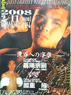 ついに【日本タイトルマッチ】が決まりました! 日時:2月11日(月・祝) 会場:後楽園ホール 開場:5時半 開始:6時(メインの国重選手の試合は8時以降) フジテレビ739にて生中継 チャンピオン (WBC世界9位) 嘉陽 宗嗣 VS 挑戦者 (WBC世界10位) 国重 隆 チャンピオン目指して全力で戦っていくそうなので、しっかり応援します! チケットは 特別RS 1万2千円 RS 1万円 指定A 7千円(応援団はこの席でいく予定) 指定B 5千円 自由席(立ち見) 3千円 行く予定をして