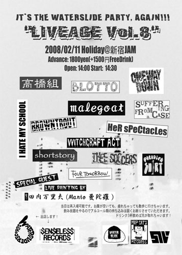 WATERSLIDE RECORDS presents ″LIVEAGE Vol.8″
