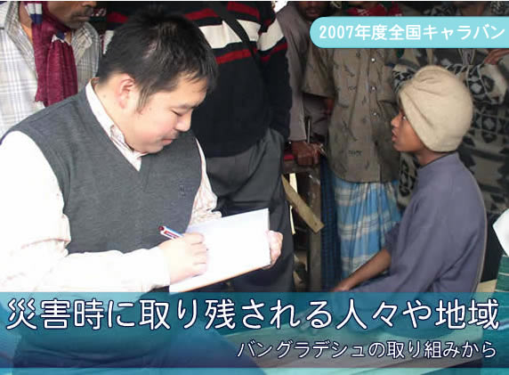 ほっとけナイト開催のご案内です。 シャプラニール全国キャラバン 「災害時に取り残される地域〜バングラデシュの取り組みから」 約2年半のダッカ駐在を終えて、帰国したばかりの小嶋淳史さん(33歳)を囲み、災害、バングラデシュのNGO事情やフェアトレードのお話を伺います。 農村開発活動、市場で働く子どもたちへの活動などを通し、考えたこと・学んだことを分かち合う会です。 日時:2008年2月14日(木)18:00〜21:00 会場:夢草堂(新潟県南魚沼市浦佐5142−1) 参加費:3,000円(ダージリンカフェ