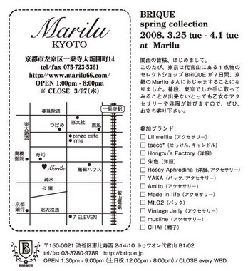関西で2つの企画展に参加しますぅ〜。 まずは2/19〜3/9神戸のhugの5周年イベント! 『数々なモノ』 数字をテーマにした作品で参加してます。 http://www.hug302.com/ そして3/25〜4/1は京都Mariluで開催するBRIQUE出張イベントに参加します。 こちらはオトメなモチーフで参加しようと思ってます☆ http://www.marilu66.com/ お近くのかた、よろしくお願いしますぅ〜!