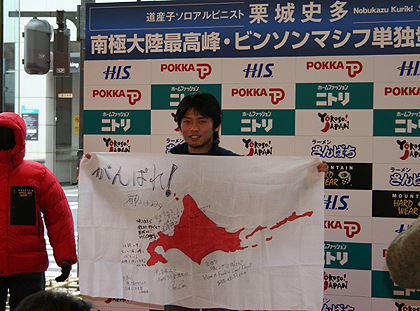 25歳の道産子!栗城史多(クリキノブカズ)さん。 前人未到!世界七大陸の最高峰に単独!無酸素!登頂にチャレンジしています。 年末に、南極の最高峰ビンソンマシフに登頂し6大陸成功しています。 あとはエベレスト1峰山!! そんな栗城さんが富良野にやってきます。 せっかくなので講演していただきます。 山のことを知らない方でも、楽しめて気づきの多い時間になると思います。 ぜひ!ご参加ください<(_ _)> 2008年2月21日(木) 19:00開演(18:30開場)〜20:30 ハイランド富良野 参加費1,000円