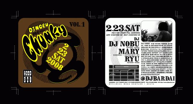 インフォで御世話になります。 今や全国から集結する濃い〜〜〜音楽ファンを地元千葉でのレギュラーパーティで殺到、悩殺させるFUTURE TERROR主宰DJ NOBUが来盛!!!!!!!!!!!!!!!!!!!!!!!!!!!!!!!!!!!!!!!!!!!! 東北を先駆け、ここ盛岡DJBARDAIにて2008年新しくレギュラーパーティ始動!!!!!!!!! その名も『CHUNKY』=塊。このタイトル自体もNOBUくん本人がつけたネーミングです。『東北の皆と大きな塊を創り、ある種の固定観念、雑念をぶち壊したい』という意味との事。その第一回目がいよいよ来週末です。デトロイトでも認められた唯一の日本