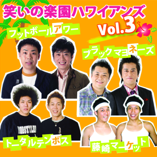 笑いの楽園ハワイアンズ Vol.3 会 場:スパリゾートハワイアンズ・ワールドマジックホール 席数734席(全席有料) 開催日:2008年2月24日(日) □1st-Stage:11時開場・11時半開演 出演:『フットボールアワー』・『ブラックマヨネーズ』・『トータルテンボス』 □2nd-Stage:17時半開場・18時開演 出演:『フットボールアワー』・『トータルテンボス』・『藤崎マーケット』 料 金:■ハワイアンズ入場券込みライブ観覧券 @3,600円(大人子供共通) ■ライブ観覧券(ハワイアンズ入場券別