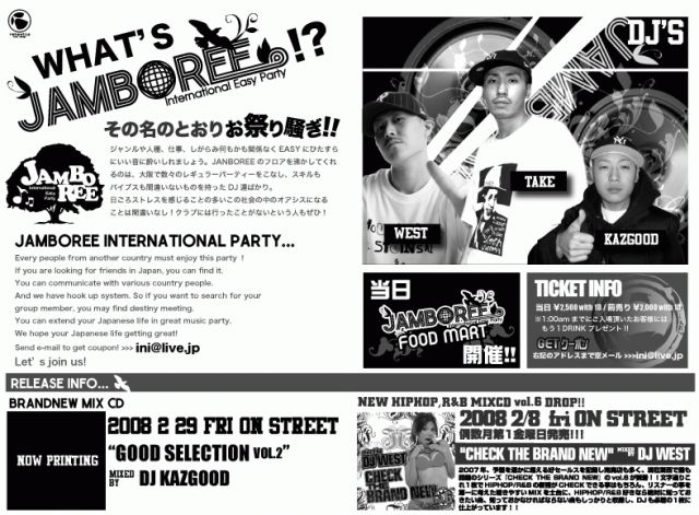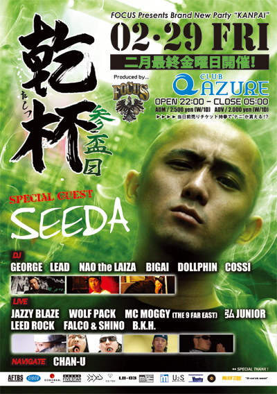 コンクリートジャングル・東京からSEEDA、関西からはJAZZY BLAZE・WOLF PACK・MC MOGGYをゲストに、DJ陣には現在大阪の夜を毎度賑わしているメンツが揃い、そしてTOTAL NavigaterにはF.O.S.A.のFull Throttle Guest Talkで、毎度おなじみ