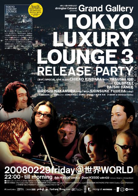 2月はDAISHI DANCEが2日のMUSeUMに続き、 29日にも世界-WORLDに登場します!! diningbar Cabaret presents Grand Gallery TOKYO LUXURY LOUNGE 3 RELEASE PARTY <MAIN FLOOR> SPECIAL LIVE & DJs : CHIEKO KINBARA with YASUSHI IDE COLDFEET DAISHI DANCE HIROSHI NAKAMURA(i-dep)with SHINSUKE FUJIEDA (i-dep) <SUB FLOOR> DJ: GUN (folder) YUMA (SPIRIT) ZUMERIN (INOL) AKIRA FOOD: 六角酒場 花道 ●OPEN/START:22:00〜deepnight ●adv 3000yen (with 1CD) ●door 3500yen (with 1C