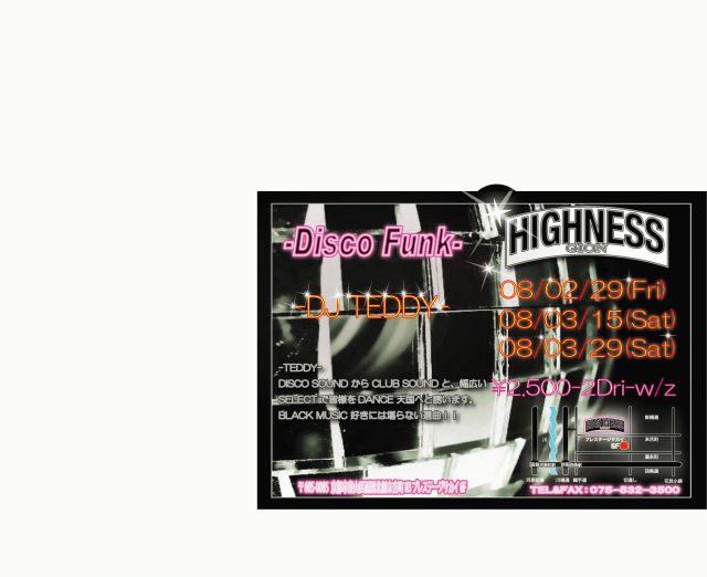 前回!好評だったので今回も「Dj TEDDY」のPLAYです 彼の作り出す独特の「懐かし〜最新HIT」 度肝根抜かれますよ 黒い音をBASEにした選曲!!FUNKYです!! 皆さん朝までドンチャンやりましょう!! ¥2.500-2Dri-W/z 時間と余裕が有れば私!! TOGEZ有頂店長もPLAYしまーす!!