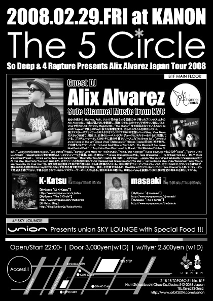 大阪は2/29(金)、The 5 Circle @ 香音-kanon- (ex.AZURE)にて開催決定!