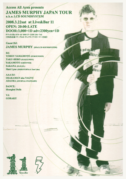 ル DFA の 首領にして、人気エレクトロ・パンク・ユニット LCD Sound System のメンバーでもあるJames Murphy が来日!!今回はJAPAN TOURの一環として改装後 よりパワーアップした11(オンジェム) に初登場。シーンで絶大なる人気を誇る