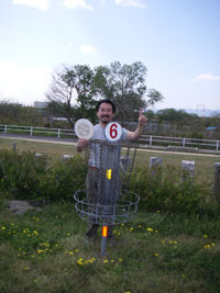 大淀地獄車のみなさん、たまには大阪でもディスクゴルフで遊びましょう。 3月20日に寝屋川の淀川河川公園・仁和寺コースで、 アモーレ八木主催のコンペをやります。 14時から16時までで9×2の18ホールを廻ります。 参加者は私のバーテンダー仲間中心で、ほとんど素人ばかりですが 今夜ROSSA ROSAに来てくれたヒカリ先生も来てくれます 参加費は1000円で参加賞・賞品ありです。 陽気も良くなる頃なんで、ジャンジャン来てもらって コンペが終わったら軽くジャムってみませんか? 2次会は参加希望者