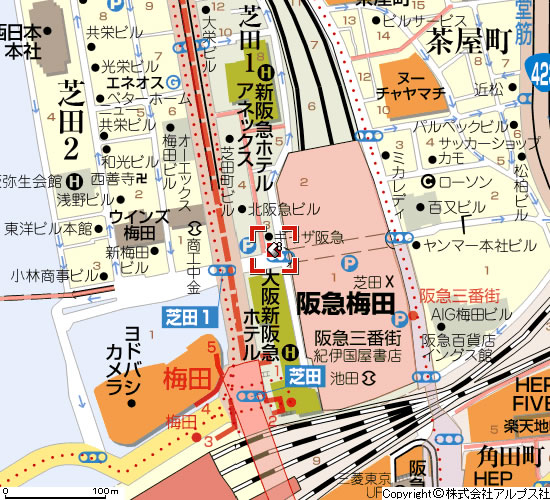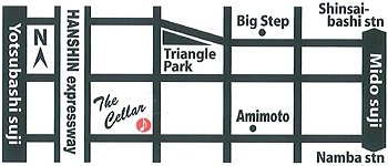Near Namba Station. Go out of the North exit of Namba Nankai Station and it's just behind Namba Marui Bldg. (The building with OIOI Toho Cinemas on the front.)