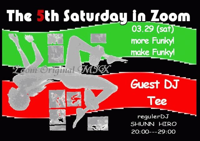 ::::more Funky !:::: ::::make Funky !:::: 《The 5th Saturday in Zoom》 年に4回の第5土曜日は もっと Funkyに! どっぷりFunkyに! 1970年代・・Discoが大ブレイクした その前から そして今も、『大衆の踊り場』の原点・黒人音楽! Funk&Soul sound 遠く母国を離れ、縛り付けられた日常からの開放を 週末に集まり つかの間の快楽を求めた兵隊達が 「音」と「踊り」で造り上げたあの空間を たまには そしてどっぷり味わってみませんか?! 沢山 汗かけるか・・・わかりません。 でも、身体