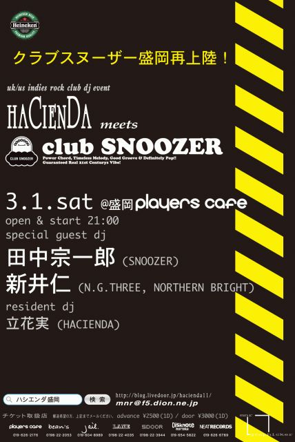 全国の主要都市を中心に開催されているDJイヴェント=クラブ・スヌーザー。 昨年の盛岡初上陸後、“また盛岡に行きたい”と誌面で公言していたタナソウこと田中宗一郎氏と、ライヴ等でも度々来盛している新井仁氏をゲストに迎え、今年もまた、我がハシエンダとジョインが決定! 田中氏に、“某都市より10倍近い盛り上がりだった”というお言葉を頂戴した前回。今年も負けないくらい、いや、それ以上のグッド・ヴァイブスでオーディエンスをロックしてくれることでしょう! そして、新井氏のDJでの出演はしばらく無さそうなので、岩手の方は