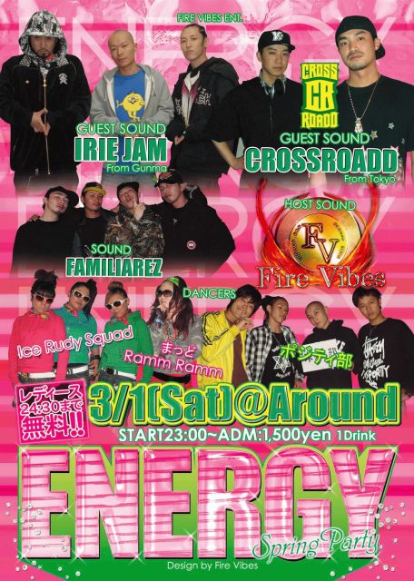 告知失礼します 今回もCRAZYなDANCEになること間違いなし!!!!! アラウンドのビル1Fにある居酒屋わさび亭で1杯飲んでエナジーに行く、これサイコー わさび亭のまわし者じゃないっすけどつまみも酒もウマイっすwwwww 『ENERGY』vol.7 @小山AROUND 3/1(土)23:00〜 -GUEST SOUND- CROSSROADD IRIE JAM -PON DI FLOOR DANCERZ- ICE RUDY SQUAD まっどRAMM RAMM -FLOOR VIBEZ- ポジティ部CREW -ERALY JUGGLIN- FAMILIAREZ -HOST SOUND- FIRE VIBES ADM:\1500/W1D ※24:30までLADYS F