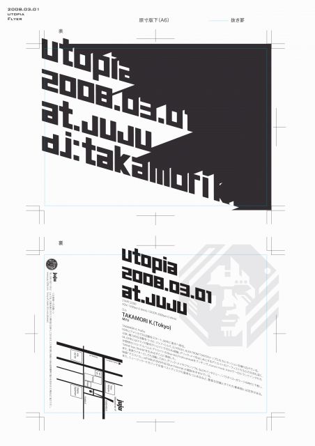 東京からTAKAMORI K.さんが主宰するパーティー「UTOPIA」です! 東京、山梨とも一味違う空気を味わうことができるパーティーです。 山梨からは都、alliance等、様々なパーティで活躍するmyuちゃんが参加です! よろしくおねがいします! チケットお持ちでない方もここの画像をプリントアウトしたもの、もしくは携帯電話で提示して頂ければ1500円(ワンドリンク付き)で入場可能です。 utopia 2008/3/1(Sat)@juju 22:00 open ADV1500yen(1D) DOOR2000yen(1D) juju http://www.juju1208.com/ jujuコミュニティー hht