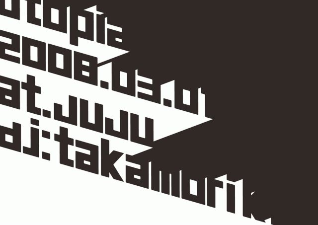 東京からTAKAMORI K.さんが主宰するパーティー「UTOPIA」です! 東京、山梨とも一味違う空気を味わうことができるパーティーです。 山梨からは都、alliance等で活躍するmyuちゃんが参加です! よろしくおねがいします! チケットお持ちでない方もここの画像をプリントアウトしたもの、もしくは携帯電話で提示して頂ければ1500円(ワンドリンク付き)で入場可能です。 utopia 2008/3/1(Sat)@juju 22:00 open ADV1500yen(1D) DOOR2000yen(1D) DJ's TAKAMORI K. MYU 【TAKAMORI.K(Cosmic Soul/Jazzism)】 93年