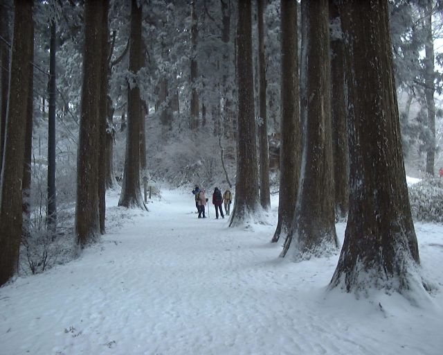 たぶん?樹氷のありそうな金剛山に登ります。 ふらふぃーさんのガイドです。 ロープウェイ前から久留野峠まで登り、山上を縦走して、千早本道を下る予定です。 途中、ロープウェイもありますので、エスケープもできます。 集合日時場所:3月5日(水)8:50 南海河内長野駅南口。南海バス金剛ロープウェイ行きバス乗り場に集合。 8:57発の南海バス金剛ロープウェイ行きに乗ります。終点で下車。ここから登山開始です。 持ち物:飲み水、弁当、雨具、ヘッドランプ、地図、コンパス、タオル、着替え。アイゼン(軽アイゼンで