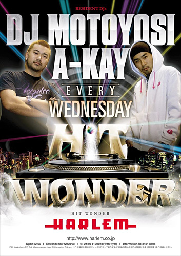 ■HARLEMが自信を持って贈るニューレギュラーパーティーが遂に始まる。週の真ん中水曜日を彩るのは、DJ MOTOYOSI&DJ A-KAYのコンビ。お互いにHARLEMの