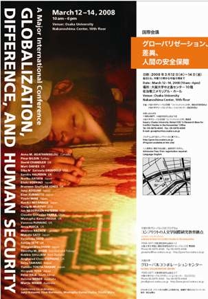 2008年3月12日から14日まで、国際会議「グローバリゼーション、差異、人間の安全保障」が開催されますのでお知らせします。