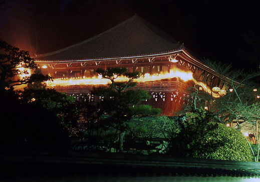 修二会(しゅにえ)とは、正しくは「十一面悔過(じゅういちめんけか)」といい、東大寺二月堂で毎年3月1日から3月14日に行われています。 一度も途絶えることなく続けられ、平成20年(2008)には1257回を向かえます。 天平勝宝4(752)年、東大寺開山良弁僧正の高弟、実忠和尚のよってはじめられたと伝えられています。僧実忠和尚が笠置の竜穴で菩薩たちの行法を見て、これを下界でも行ないたいと願ったことから始められたといわれています。 二月堂の本尊の十一面観音様に11人の練行衆が人々にかわって罪を懺悔し、国家の安泰と