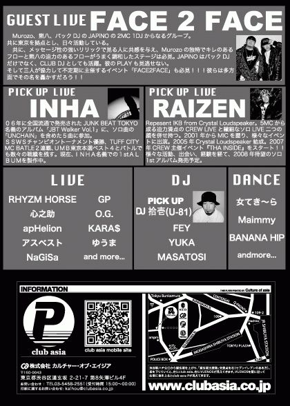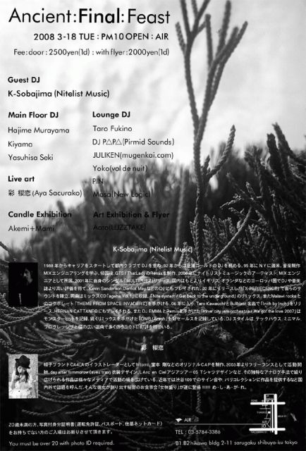 MENS:3000YEN/2D, LADIES:2000 YEN/2D, WITH FLYER TIL MIDNIGHT 1000YEN/1D