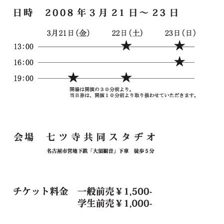 どうも〜お世話になっております。 バロンドールのマスターです♪(o´∀`o) 23日に貸切予約があるため内容が変わりました。。。お願いします。 3月23日(日)に大須観音の近くにある七ッ寺共同スタヂオで演劇見るよー♪( *´艸`) マスターは劇団アルデンテさんの大ファンなのでイベントをします!!!面白いよーーーーー♪おっしゃーーーー!('A`)y-~~ 『劇団アルデンテ「悪の華」in 七ッ寺共同スタヂオ』 大須で劇団を見て食事します。(食事は自由参加です。) 3月23日(日) 七ッ寺共同スタヂオ 16:00〜18:30 食事会 1