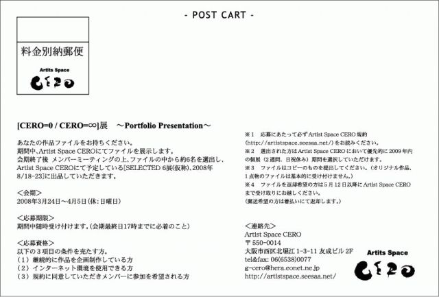 会期終了後 メンバーミーティングの上、ファイルの中から約6名を選出し、Artist Space CEROにて予定している[SELECTED 6展(仮称)、2008年8/18-23]に出品していただきます。