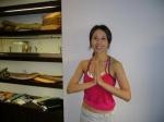 普段コンガを叩いているモミーにドラムを叩かせます!
