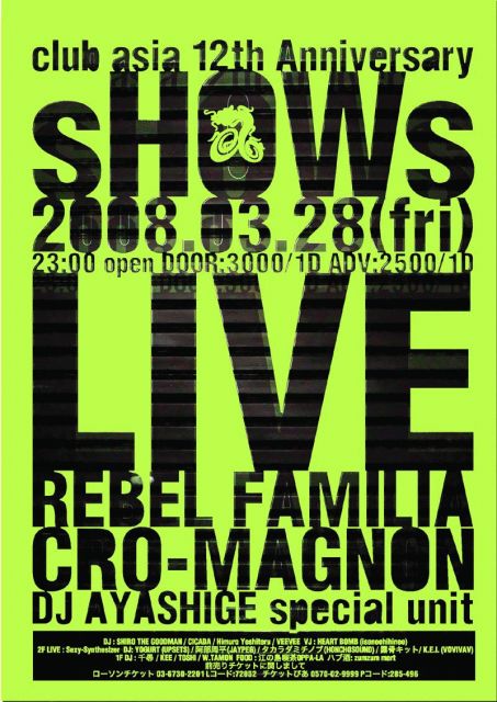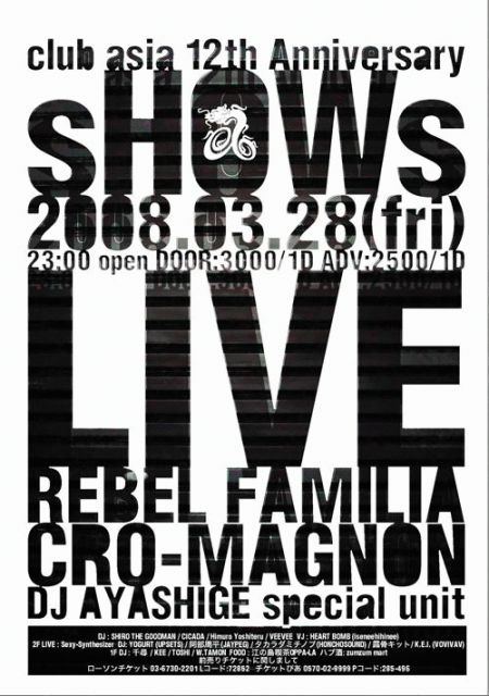club asia 12th Anniversary 『sHOWs』 3/28(fri) 23:00 open DOOR\3000/1D