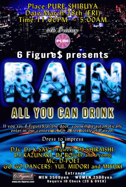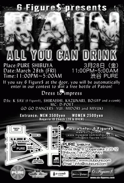 6 Figure$ Presents "RAIN" ~ALL YOU CAN DRINK~ @ Shibuya Club Pure