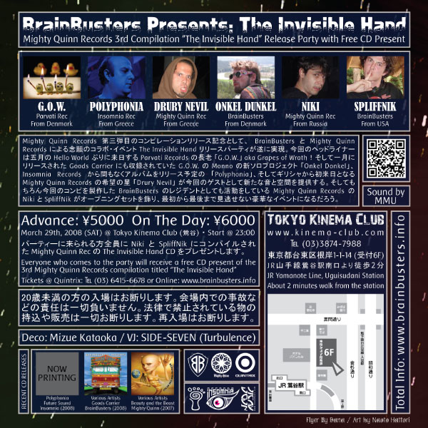 Mighty Quinn Records 第三弾目のコンピレーションリリース記念として、 BrainBusters と Mighty Quinn Records による念願のコラボ・イベ