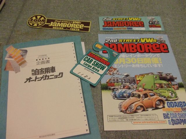 本日エントリー受理書、届きました。 6時30分ゲートopenだそうです。 エントリー車は、前もって1列に 並び台数を言えば並べて頂けるようです。 ですので、今回もツーリングでいきましょ〜 時間とかは、追々連絡します http://www.streetvws.com/jamboree.html