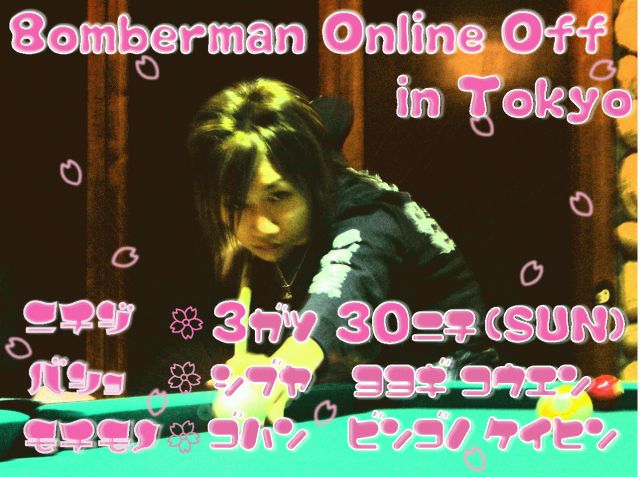 【開催日時】 2008年3月30日 日曜日 雨天決行! 11時30分現地集合! 【開催場所】 ・東京渋谷 代々木公園。 【最寄り駅】 ・JR 原宿駅 ・小田急 代々木八幡駅 【内容】 ・熊の結婚式&披露宴 ・お祝いの曲をカラオケ ・みんなでお花見しながらワイワイ食事 ・ゼウスによる関西式たこ焼き作り ・ドキドキハラハラのビンゴ大会 ・写真撮影 ・2次会以降は雰囲気で。 【持ち物】 ・お花見の食事用のみんなで食べれる物を1人1品 ・お料理ウマーな人はお弁当など ・1人1000円程度のビンゴ景品(中身が