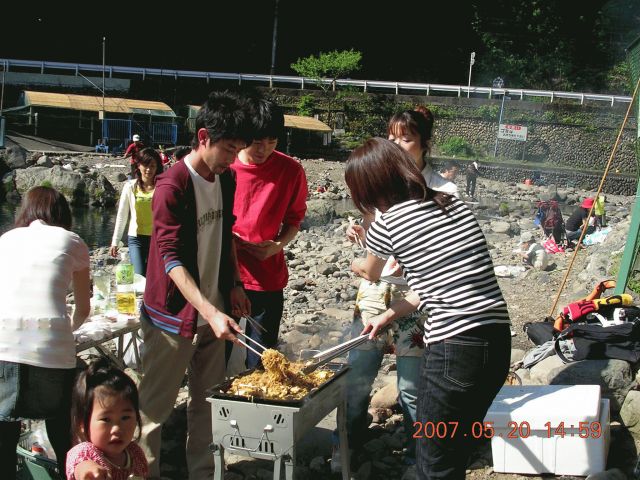 早春の風物詩秋川渓谷での渓流釣り&バーベキューです 今回行く秋川国際ます釣り場は、自然の川を堰き止めた野趣溢れる釣り場です 釣りが初めての方にもプロ漁師のTAKEが親切丁寧に釣り方のコツを伝授します 釣った魚はその場で焚き火を熾して焼いて食べましょう 釣り立ての焼き立ての魚にはもう最高 魚以外にも蝦夷鹿のカルビの焼肉をメインに豚汁、焼きそばなども用意しています。 飲み物はビール、サワー、ソフトドリンクなど各種飲み放題です 釣り&バーベキューを楽しんだ後は