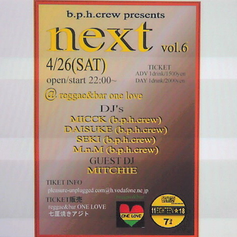 OPEN START 22:00-ADV 1500YEN w 1 drink (LIMIT 100)