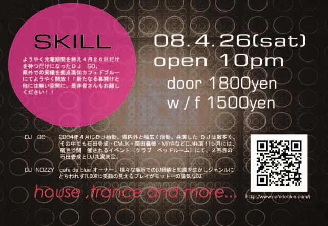 house music,hard house,tranceを中心にした選曲でお届けするCLUBPARTY[SKILL]