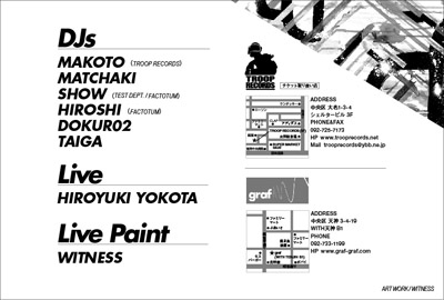 前売りチケットの購入は、私(A1)にメッセージいただくか、AZITO(092-716-5528)もしくはgreenmild@hotmail.co.jpまでお問い合わせ下さい。