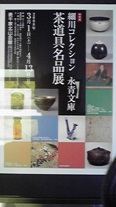 利休賜死に伴う謹慎で利休を見送った細川三斎を始めとする細川家(永清文庫)の特別展。明清や朝鮮王朝から渡来した香炉や茶碗など貴重な展覧。利休作の竹一重切り花入れは破損箇所を漆とカスガイで補修し、侘びしさと存在感がある一品。新幹線で京都駅から南北線に連絡でき、遠隔の人も交通至便な立地なので、是非見学されたい。入場料千円(永清文庫維持費、呈茶券込み)