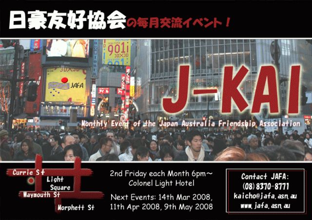 Come along and enjoy a cold beer and meet some new friends in a relaxing environment. Our members include Japanese who are working, studying or visiting in Adelaide, and loca