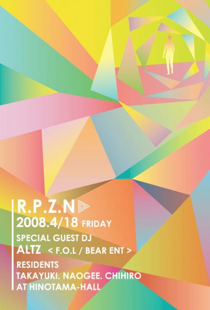 RPZN(レペゼン) 2008/4/18(FRI) @火の玉ホール 22:00~ 2000円2D DJs SPECIAL GUEST DJ ALTZ <F.O.L / BEAR ENT> RESIDENTS DJ TAKAYUKI / NAOGEE / CHIHIRO VJ TOM ◇ALTZ◇ ファニーかつファンキーな、極上のエレクトロニックミュージックを 世に繰り出し、世界中の好き者のハートを鷲づかみにしている ダンスミュージックシーンの奇才。 西が宇宙を誇る5次元パーティー<FLOWER OF LIFE>を核に、 ライブ、DJ、リミックスワークを様々な名義を使い分け、ローカルから 巨大フェスまでを自由に渡り歩く。 [時
