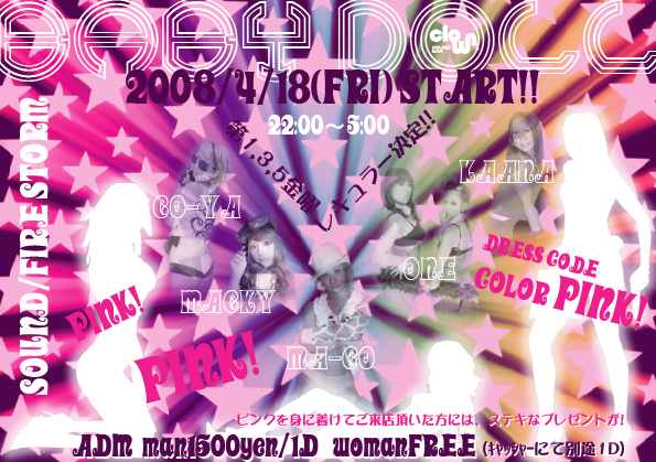 毎月第1・3・5金曜日にゃんにゃんナイト!!! ☆☆BABY DOLL☆☆ @SOUND BAR clown LADIES:\0 MEN:\1000 (キャッシャーにて別途ドリンクチケット(\500)購入して下さい。) ☆SOUND☆ FIRE STORM with SOUND SYSTEM ☆DANCERZ☆ MA-CO / CO-YA / KAANA / MACKY / ONE <SOUND BAR clown> http://hp34.0zero.jp/778/clubclown/ 大阪府泉大津市北豊中町3-2-5 TEL: 080-1490-7413