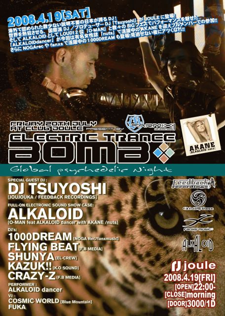 海外で認められた数少ない説明不要の日本が誇るDJ!世界を熱狂させる、国際派DJ/プロデューサーDJ 「Tsuyoshi」がJOULEに登場!そしてALKALOIDとしてLOUD12位「O-MAN」と数々のBIGフェスでパフォーマンスを魅せたALKALOIDdancerが今回は有名女性誌「nuts」で活躍中のAKANEを迎えフルメンバーでの参加!!さらにNOGArecやFanxsmusicで活躍中の1000DREAMも参戦!見逃せない夜にアツくなれ!!