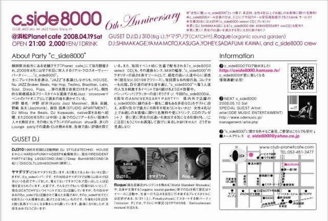 Open: 2008.4.19(Sat) 21:00〜