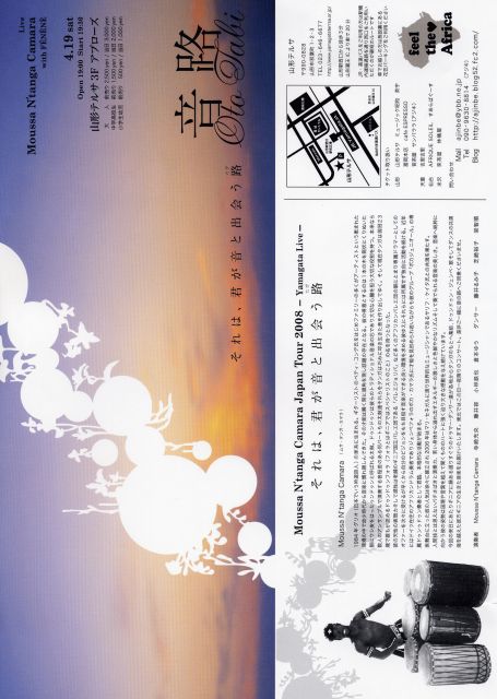 管理人様 よろしくお願いいたします 音茶屋さんにてチケットも取扱いいただいております どうもありがとう!! 今回の来日にあたり西アフリカ ギニア共和国に縁がある 日本を代表する選りすぐりのドラマー ダンサーたちが彼の元に集結 ジェンベ ドゥンドゥン 歌 ダンスの共演 遠くギニアの生きた音楽をお届けします 東北では今宵限りのコンサート ぜひ御一緒に音の路へご同乗ください!! DounDoun Monster JAPAN TOUR 2008 『ンタンガ 来た!!!ンガ〜〜〜〜〜〜〜〜〜〜!!!』 ついにこの春、 すごい男がやってくる