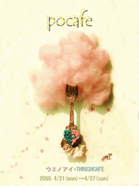 春のポカポカした日はスラッシュカフェにいこう! ということでウエノアイ+スラッシュカフェ第二段イラスト展いたします☆★ ぜひぜひ遊びにきてくださいね〜♪♪ ウエノアイ イラスト展 『pocafe』 2008、4/21(月)〜4/27日(日) 場所*THRUSH CAFE(スラッシュカフェ) 820-0014福岡市中央区平尾3-5-10 ビュートリアムビル2F 092-521-4323 http://www.thrush-d.com 営業時間:11:30〜25:00